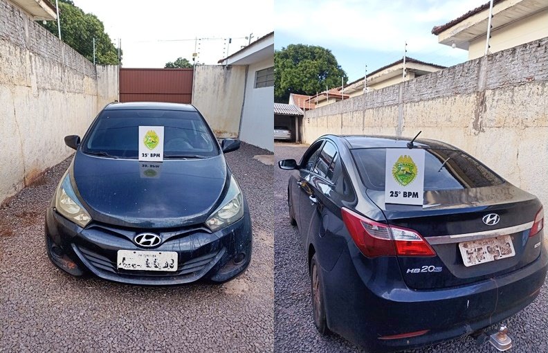 Em patrulhamento os policiais avistaram um veículo Hyundai HB20s de cor preta. O carro estava todo sujo, com avarias no para-choque e nas lanternas, além de emplacamento da capital do estado.
