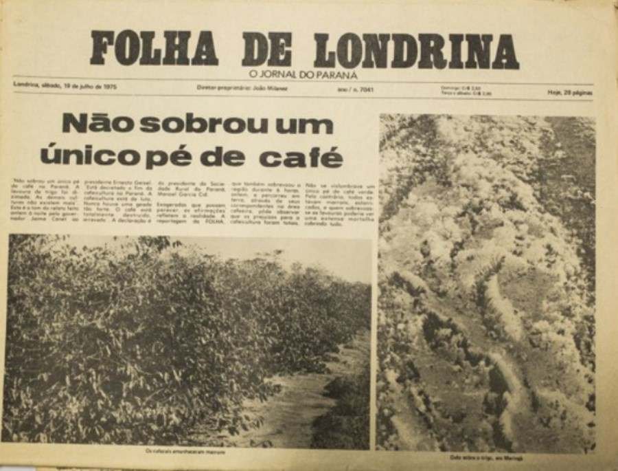 Há 48 anos, “geada negra” dizimava cafeicultura e provocava o maior choque demográfico do Estado do Paraná que mergulhava na maior crise de sua história. No dia 18 de julho de 1975, o solo de boa parte do território paranaense amanheceu coberto por uma espessa camada de gelo provocada pela geada negra.