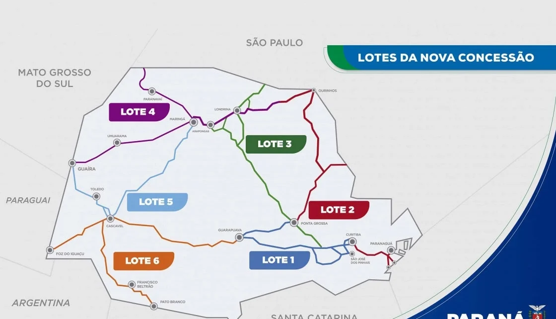 O lote terá cinco praças de pedágio: São Luiz do Purunã (BR-277), Lapa (BR-476), Porto Amazonas (BR-277), Imbituva (BR-373) e Irati (BR-277).
