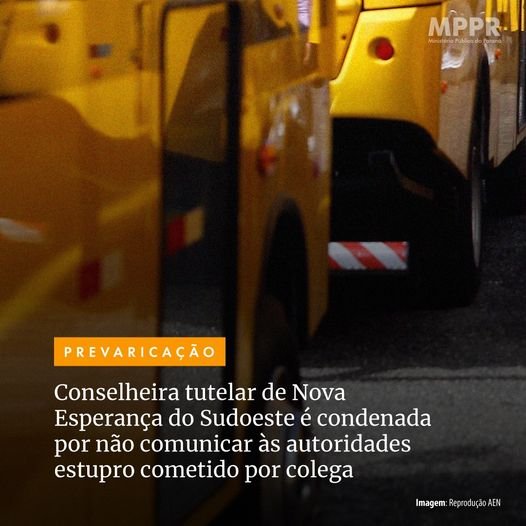 Segundo apurado, o colega, que tem 39 anos e também era motorista de transporte escolar, teria praticado atos libidinosos contra uma criança de 11 anos dentro de um ônibus escolar durante o percurso até a escola. Ao denunciar a conselheira tutelar, que era presidente do colegiado, o MPPR sustentou que, motivada pelo desejo de não se indispor com o colega, ela teria violado o dever inerente a seu cargo, uma vez que tinha obrigação de comunicar o fato às autoridades. Ela já estava afastada de suas funções desde março de 2023, quando o Ministério Público tomou conhecimento do fato e propôs ação civil para a perda do cargo, estando essa medida judicial ainda pendente de julgamento em primeira instância.