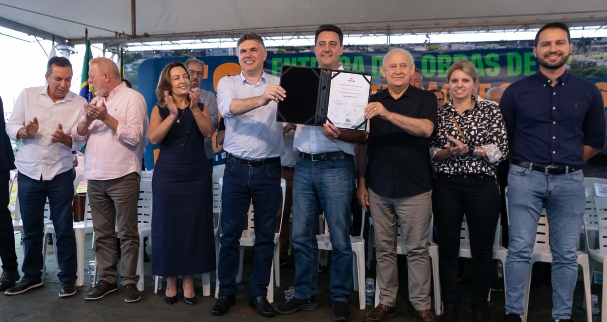 PRESENÇAS – Acompanharam a solenidade o secretário estadual de Infraestrutura e Logística, Sandro Alex; o diretor-presidente do DER/PR, Fernando Furiatti; os deputados federais Vermelho e Paulo Litro; os deputados estaduais Luís Corti e Adão Litro; e o presidente da Associação dos Municípios do Sudoeste do Paraná (Amsop) e prefeito de Pranchita, Eloi Lange.