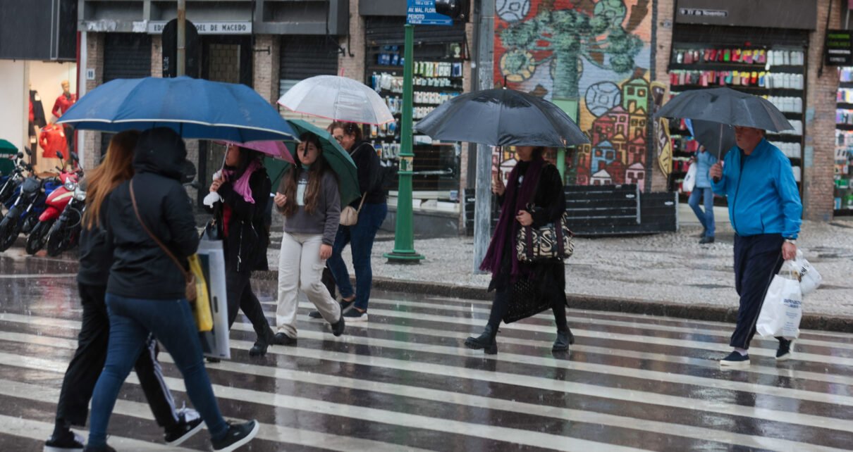 Chuva que chegou na quinta-feira (26) se mantém no fim de semana e, no domingo (29), uma nova frente fria se aproxima, trazendo temporais para várias regiões paranaenses. Após a passagem da frente fria, as temperaturas devem cair novamente – mas o frio não será tão intenso quanto nesta semana.