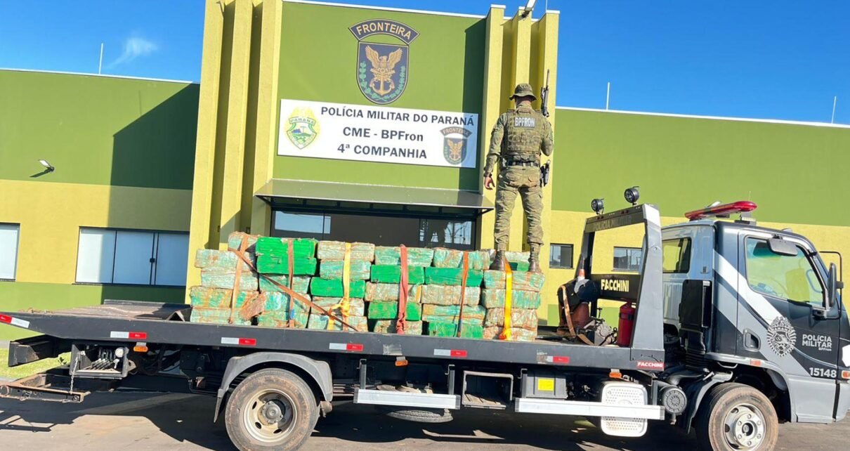 A Polícia Militar do Paraná (PMPR), através do Batalhão de Polícia de Fronteira (BPFron), em conjunto com agentes da Polícia Rodoviária Federal (PRF), apreendeu 1,3 tonelada de drogas nesta terça-feira (14). A ação ocorreu após abordagem de uma caminhonete na rodovia PR-323, próximo a Perobal. Ao todo foi apreendida 1,3 tonelada de maconha, incluindo 18,7 […]