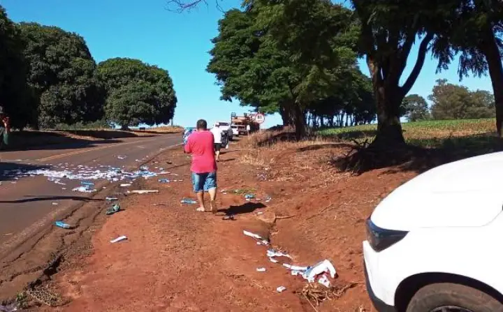 Goioerê – Caminhonete carregada com cigarros tomba e população saqueia a carga
