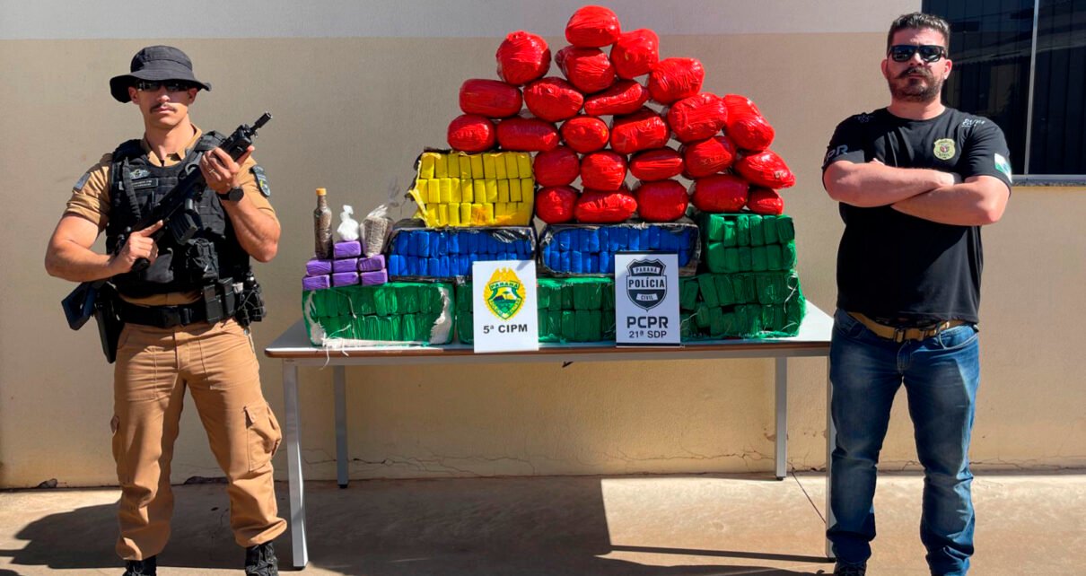 Uma ação integrada entre as polícias Militar e Civil resultou na apreensão de mais de 200 quilos de drogas em Cianorte, na região Noroeste do Paraná, nesta terça-feira (23). Quatro pessoas foram presas durante as abordagens. Conforme o relato da ocorrência, policiais civis prenderam dois motoristas que seriam “batedores” para o transporte de uma carga […]